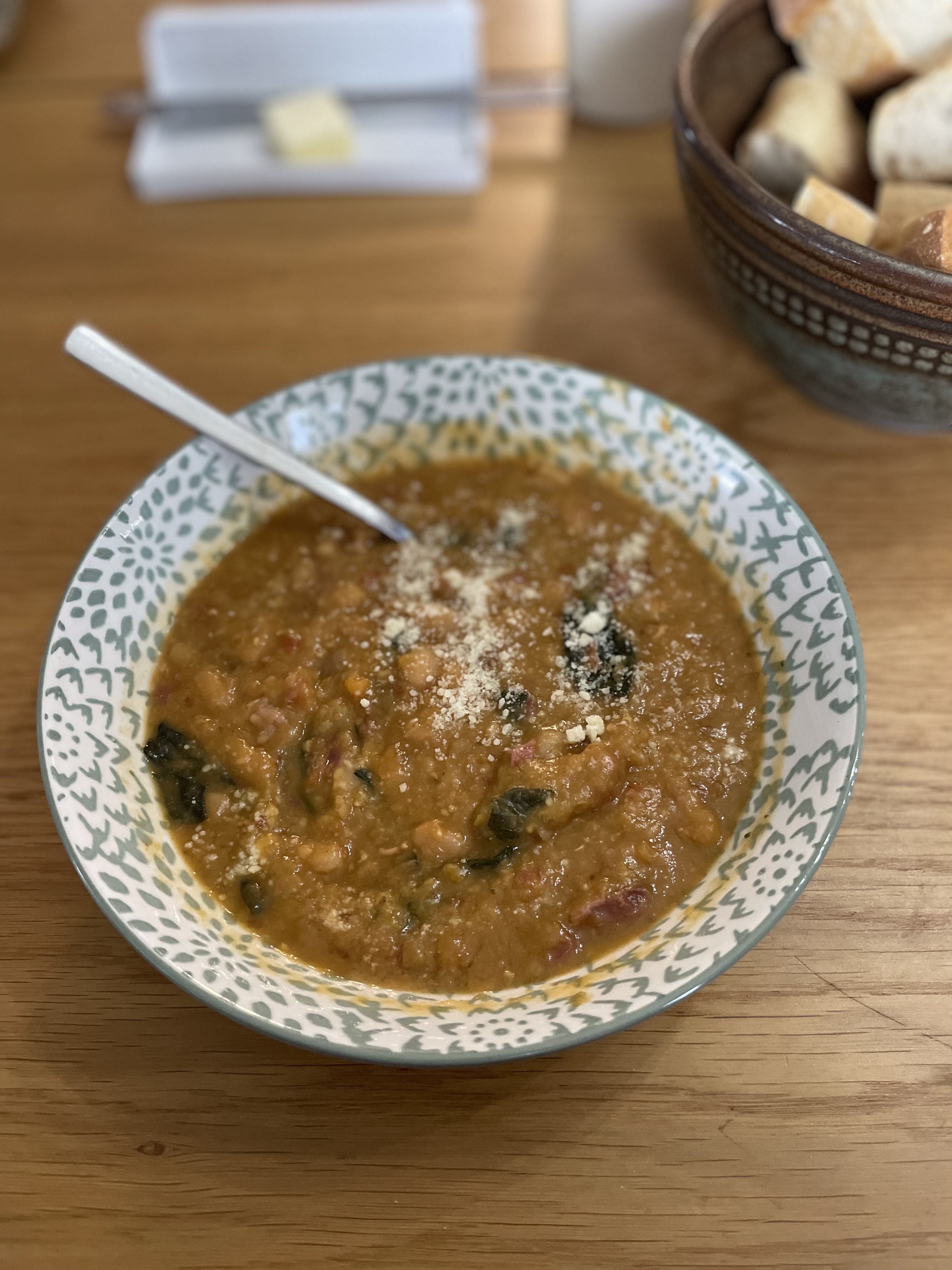 In the last cold days of winter, my family was looking for a hearty thick soup for dinner. Threw this together with what was in the pantry and it turned out really well! Thought I’d share.