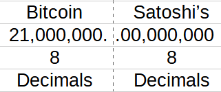 We could of had 2 billion bitcoin and not enough satoshis to go around. Ghastly. So thank god Satoshi settled on 21 million bitcoin, with 8 decimal places on both sides of the dot.