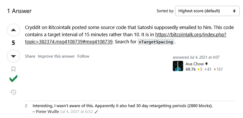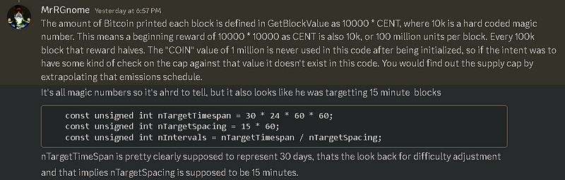 So what's my main takeaway from this rabbit-hole of Bitcoin history, Alice? For me, these numbers are fun to play with, to know how Satoshi was thinking at this early stage of Bitcoin's design. Exploring what could have been for Bitcoin in its genesis is a fun thought experiment. Satoshi was clearly smart for what was mostly a one man job, but he probably had help early on with code review. So what's my main takeaway from this rabbit-hole of Bitcoin history, Alice? For me, these numbers are fun to play with, to know how Satoshi was thinking at this early stage of Bitcoin's design. Exploring what could have been for Bitcoin in its genesis is a fun thought experiment. Satoshi was clearly smart for what was mostly a one man job, but he probably had help early on with code review.