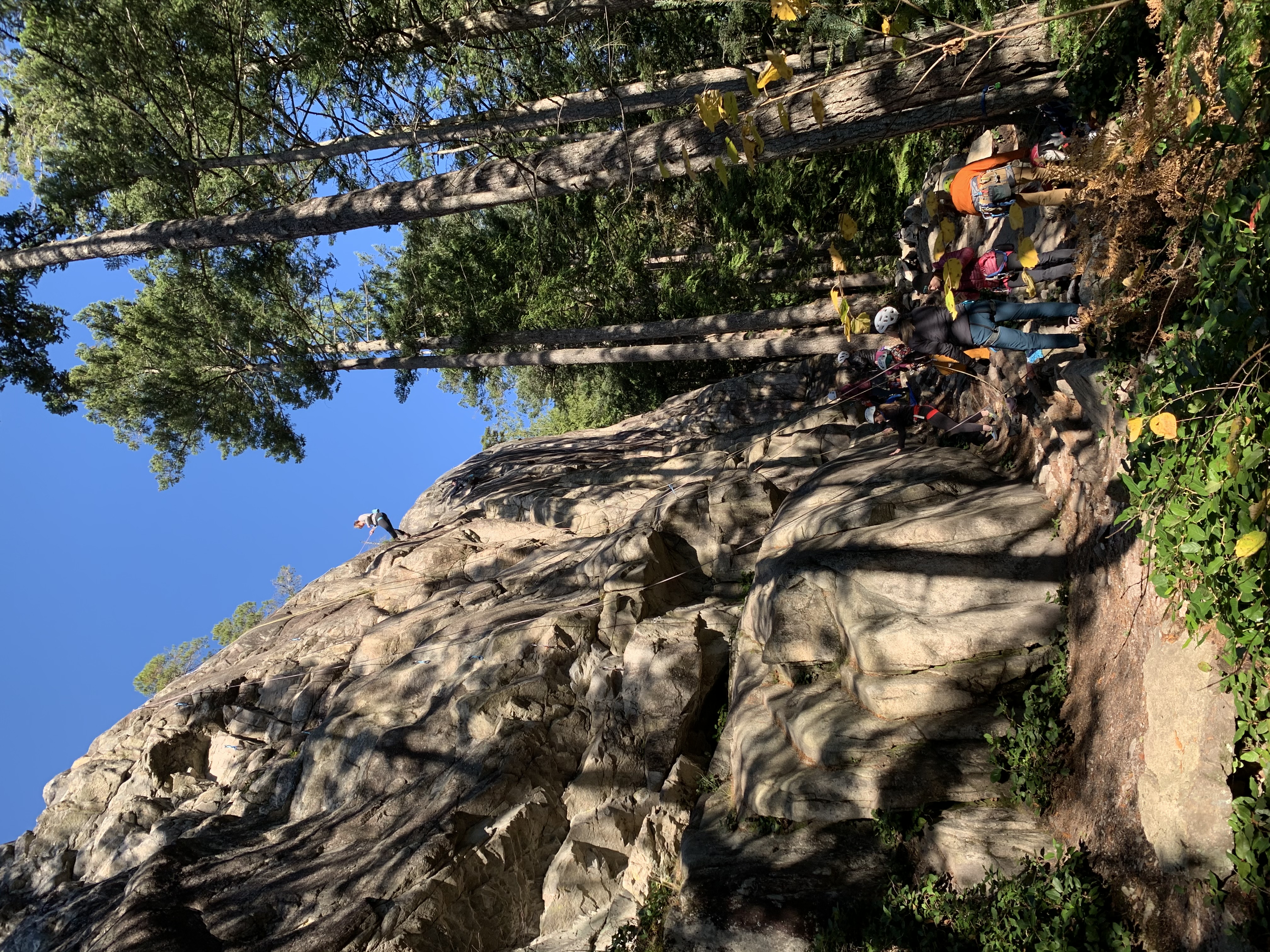 The way down Jurassic Ridge was fun. We went down a few steep rock faces that require assistance of the permanently attached rope. We took our time and eventually got down to catch some rock climbing action at the rock walls.