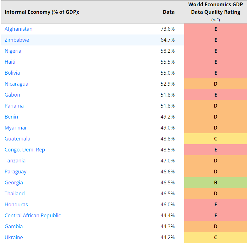Informal Economy Sizes As a Percentage Of GDPInformal Economy Sizes As a Percentage Of GDP
