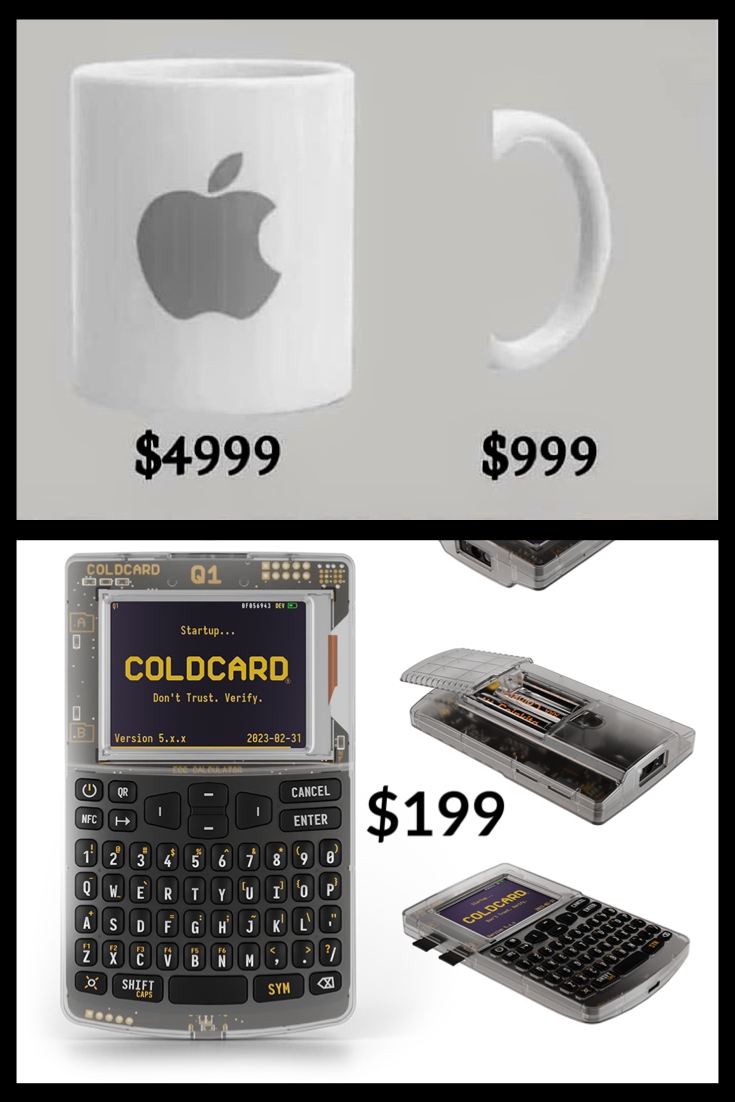 COLDCARD Q is the higher-end COLDCARD signing device that comes with a full QWERTY keyboard, a larger LCD screen, a real QR scanner and more. The Q uses exactly the same security model as the Mk4 COLDCARD, with dual multi-vendor secure elements.