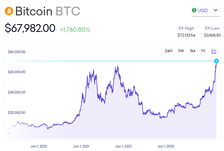 Current prize per bitcoin: $67,982.00