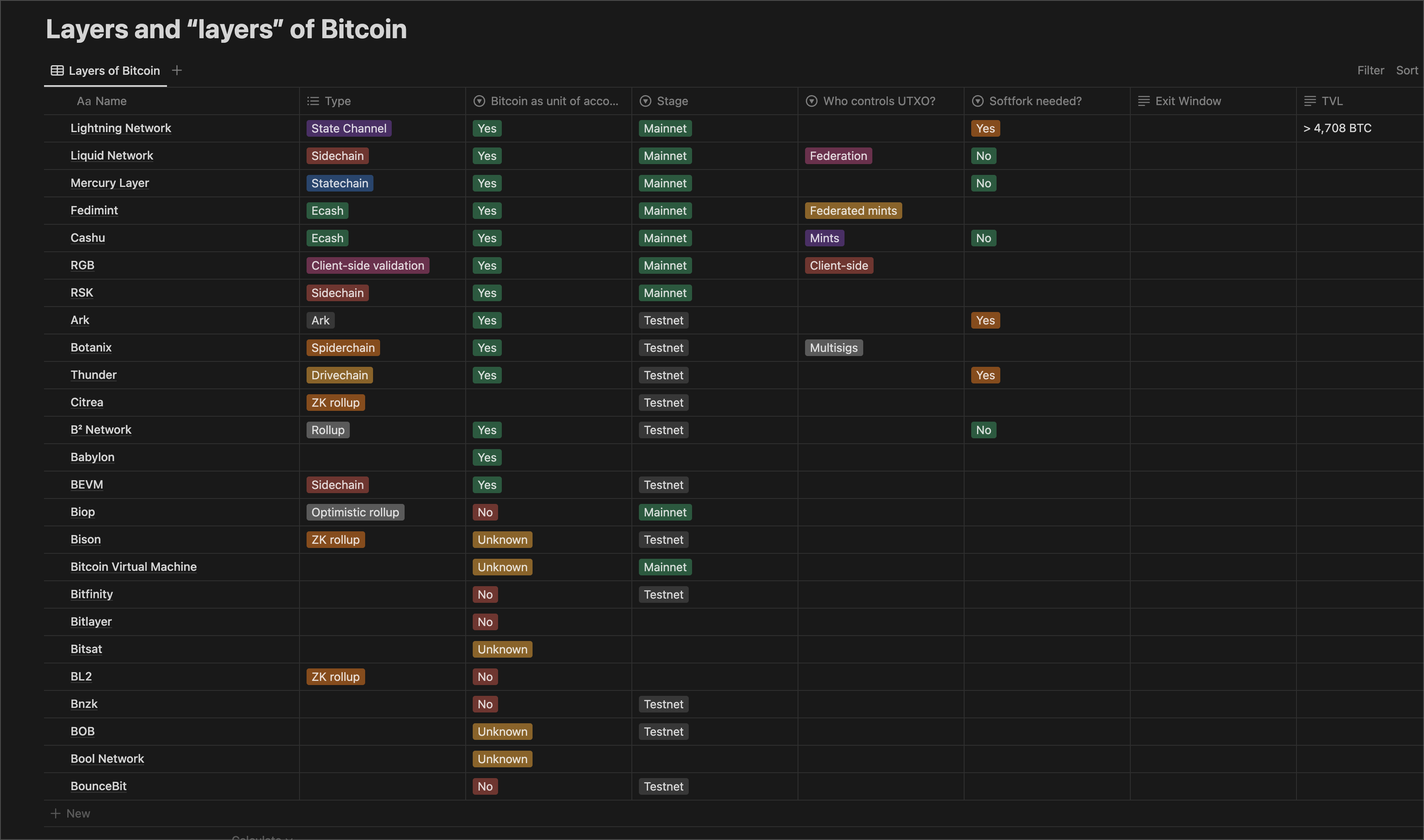 In the age of scammy "L2s" we need a good resource with researched info about layers and "layers" of bitcoin. ETH guys have https://l2beat.com/scaling/risk that really well points out risks and attack vectors of all ETH layers, we need something similar.