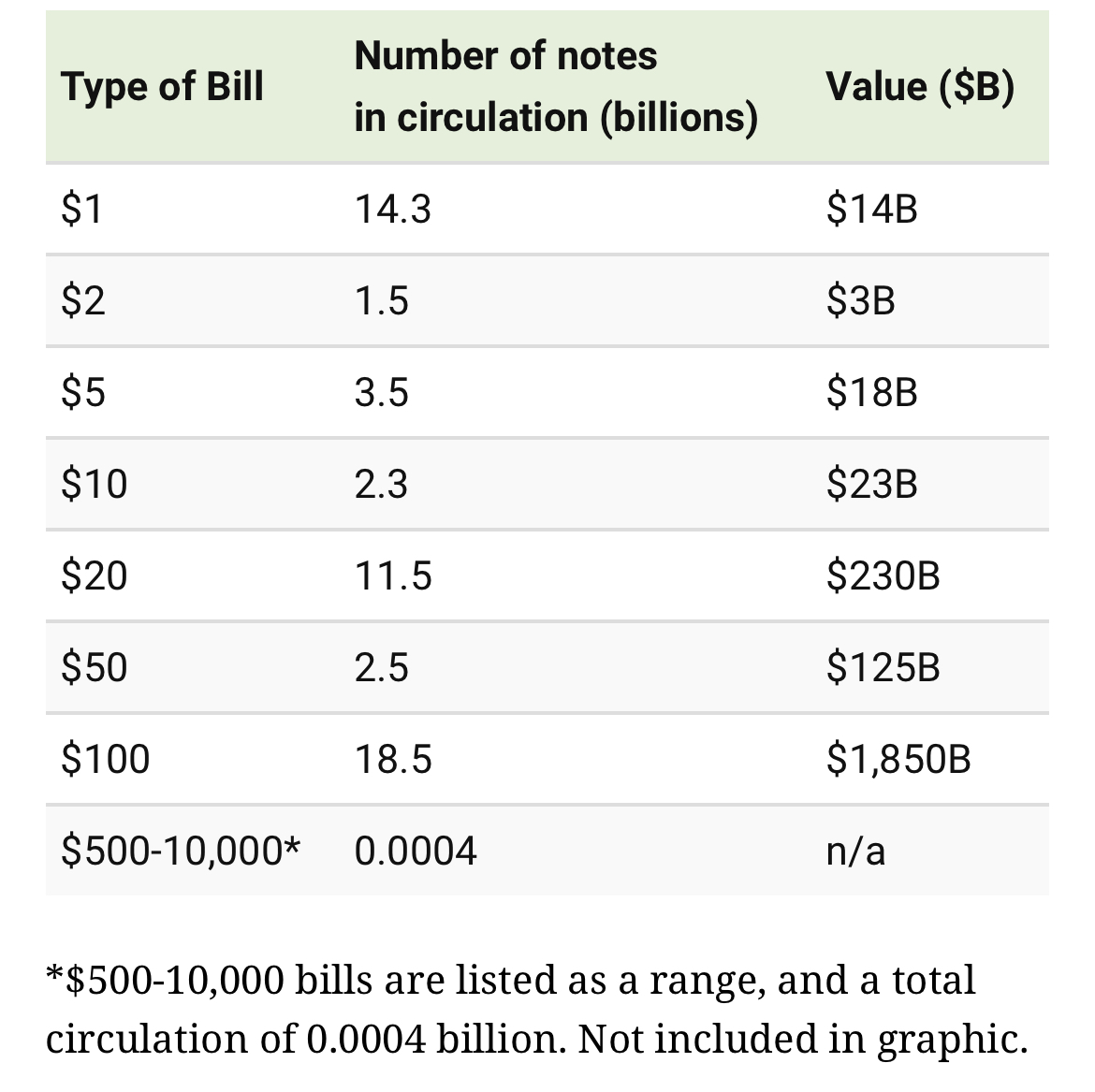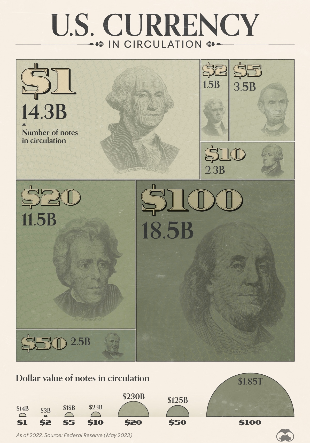 $100 bills are the most common bill in circulation, even ahead of $1 bills.