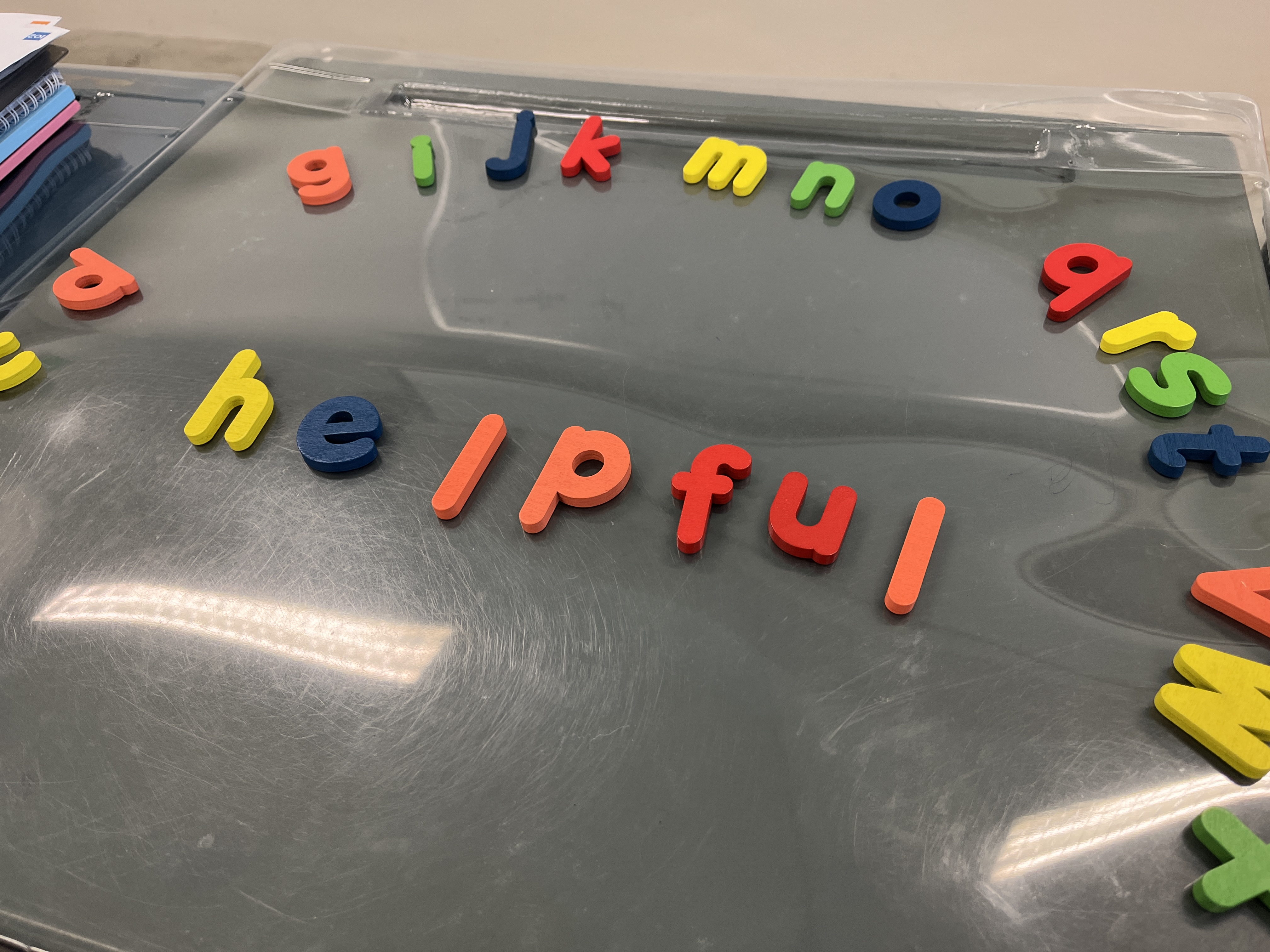 Since I was confident about his reading, I moved on to spelling. I got him to try to spell these words using coloured letters. I hoped that he would remember these words better because this was a hands-on activity.