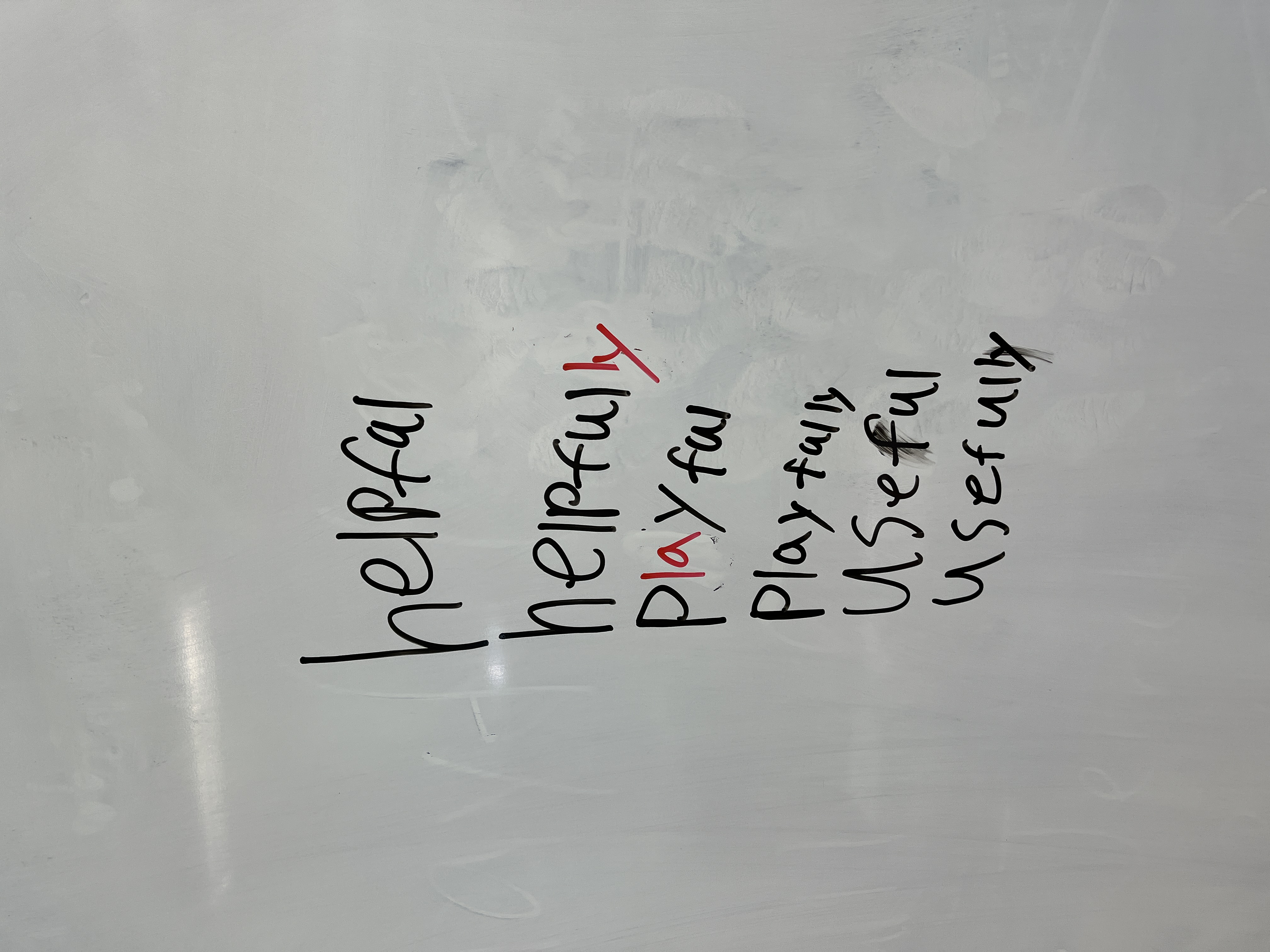 Lastly, I taught him how to attach the ‘-ly’ suffix to the words.