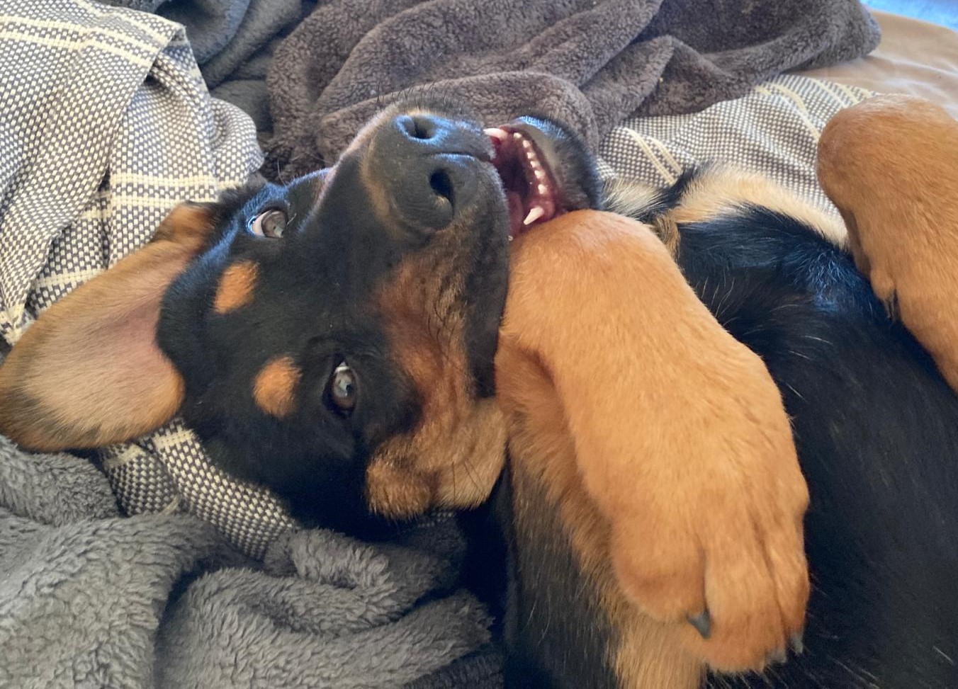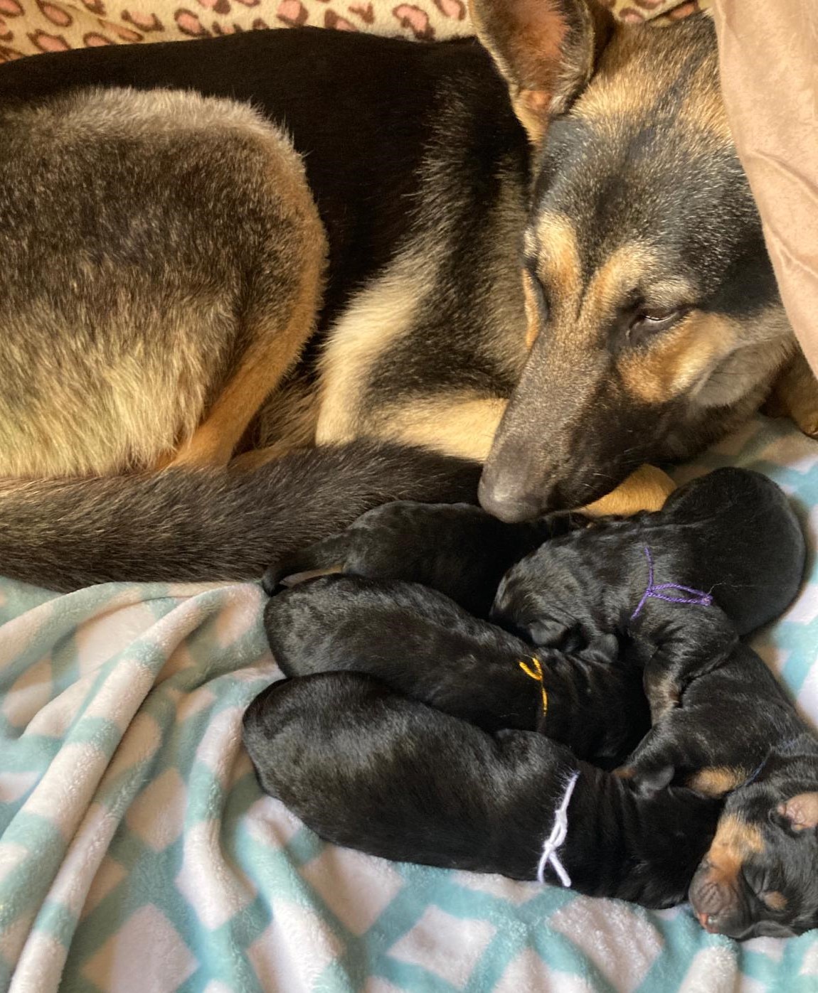 Exactly right :) Her mom is full German Shepherd as far as we know, she's our guard dog. Abbie is a lot more chill like her Rottweiler dad.