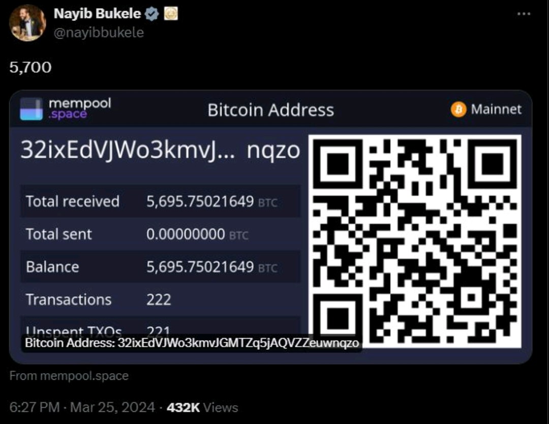 The President of El Salvador has disclosed that all the Bitcoin purchased by the state are held in a single wallet with a single address.