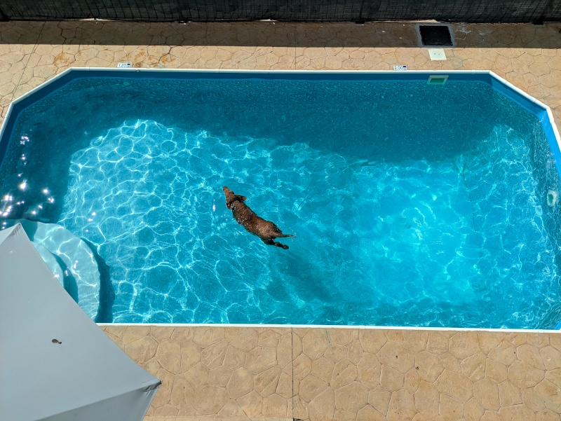 Your Standard Poodle Having A Swim In the Pool On a Sunny Day