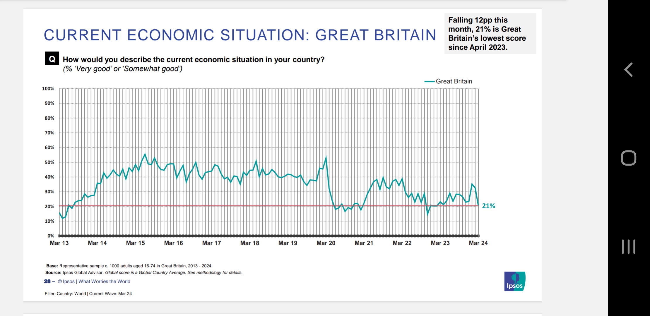 Falling 12pp this month, 21% is Great Britain’s lowest score since April 2023.