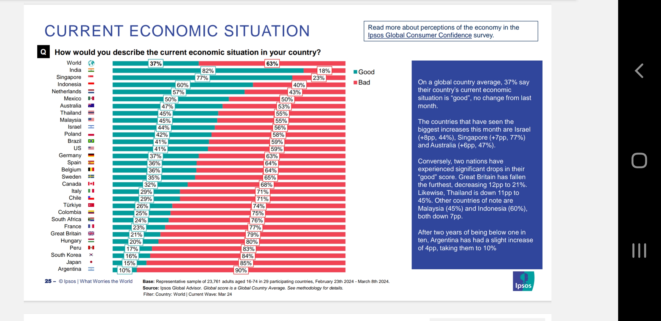 March 2024 marks the first time in two years that Argentina’s “good” has risen to 10%