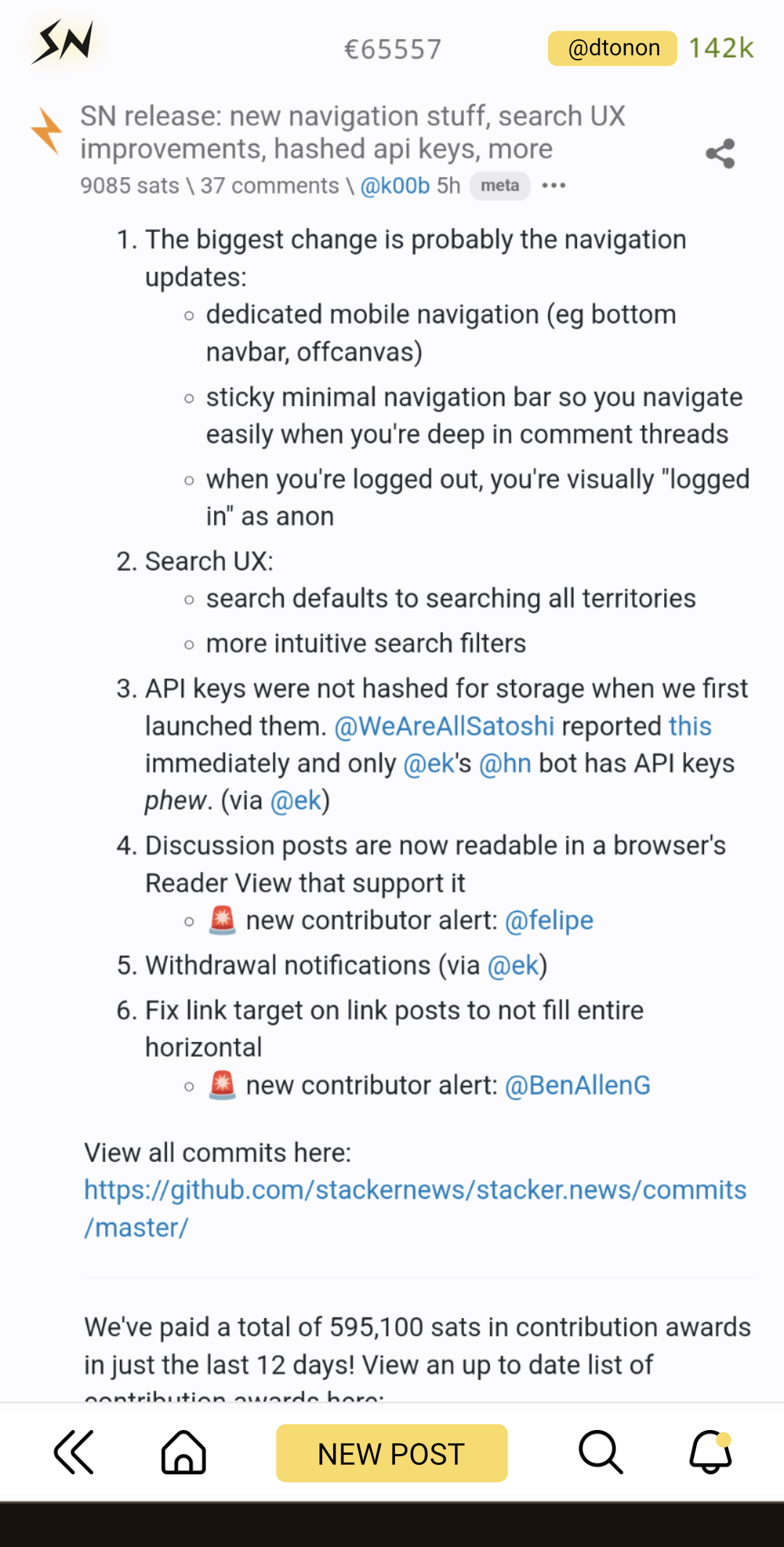 View all commits here: https://github.com/stackernews/stacker.news/commits/master/