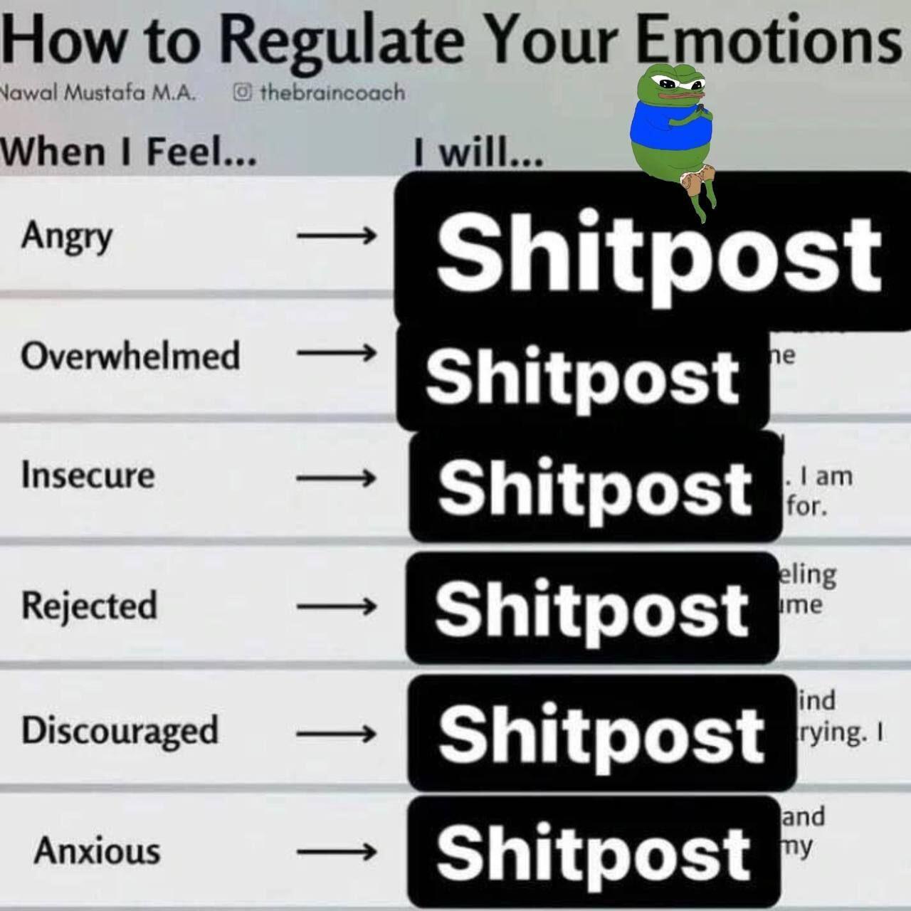 Man I'm so sorry you get so angry, overwhelmed, insecure, rejected, discouraged and anxious. But I must tell you that's normal in the stupid world we live in. I hope shitposting is helping you a lot.