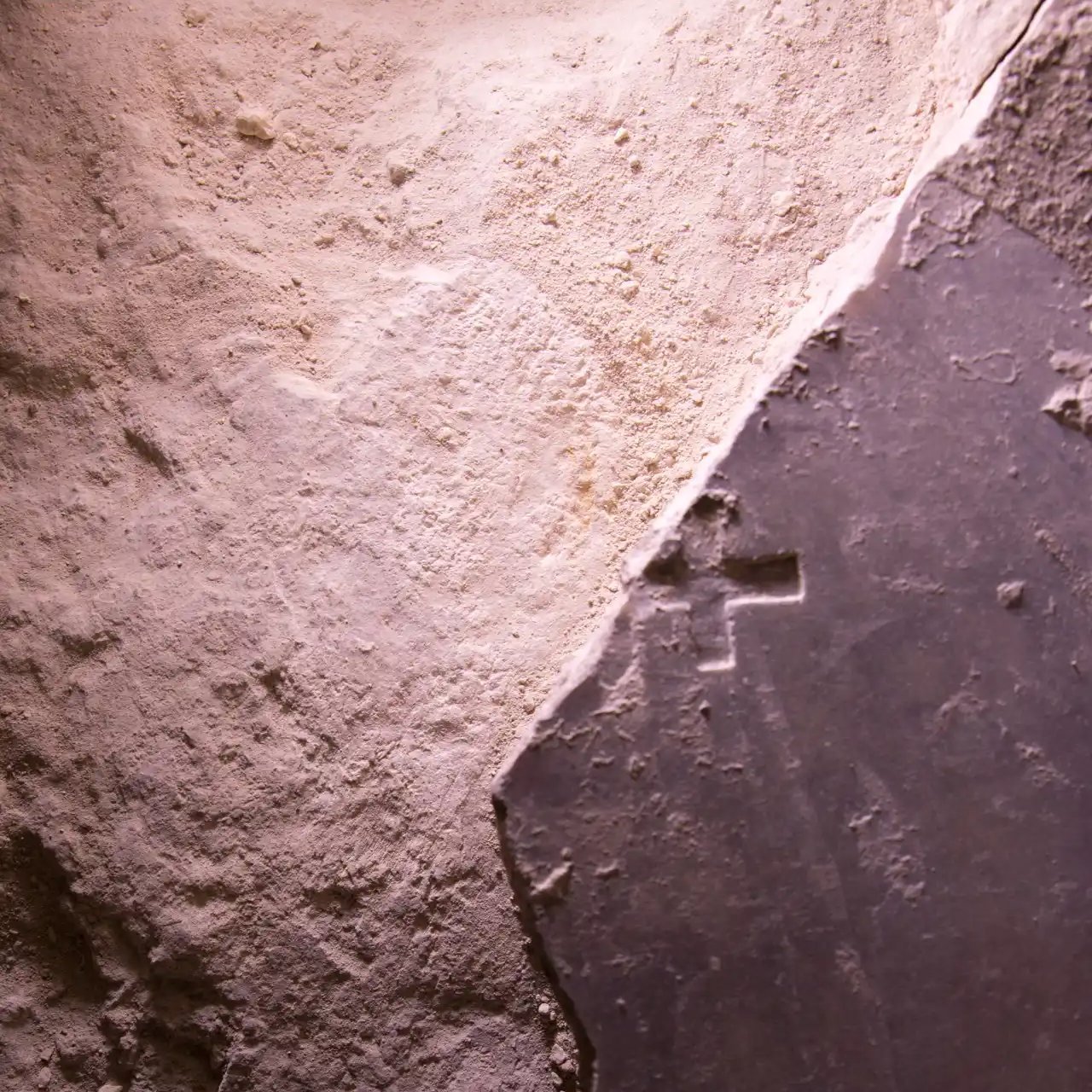 • A marble slab with a cross carved into it