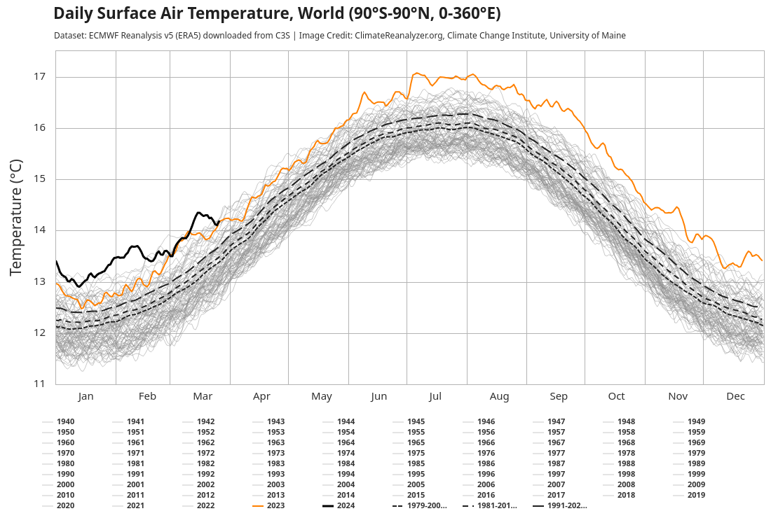Apart from the scientific data, how is it going where you live in temperature terms? Are you noticing 2024 and 2023 being different? For me, it was very noticeable in February, with very warm days. But March was colder than usual.