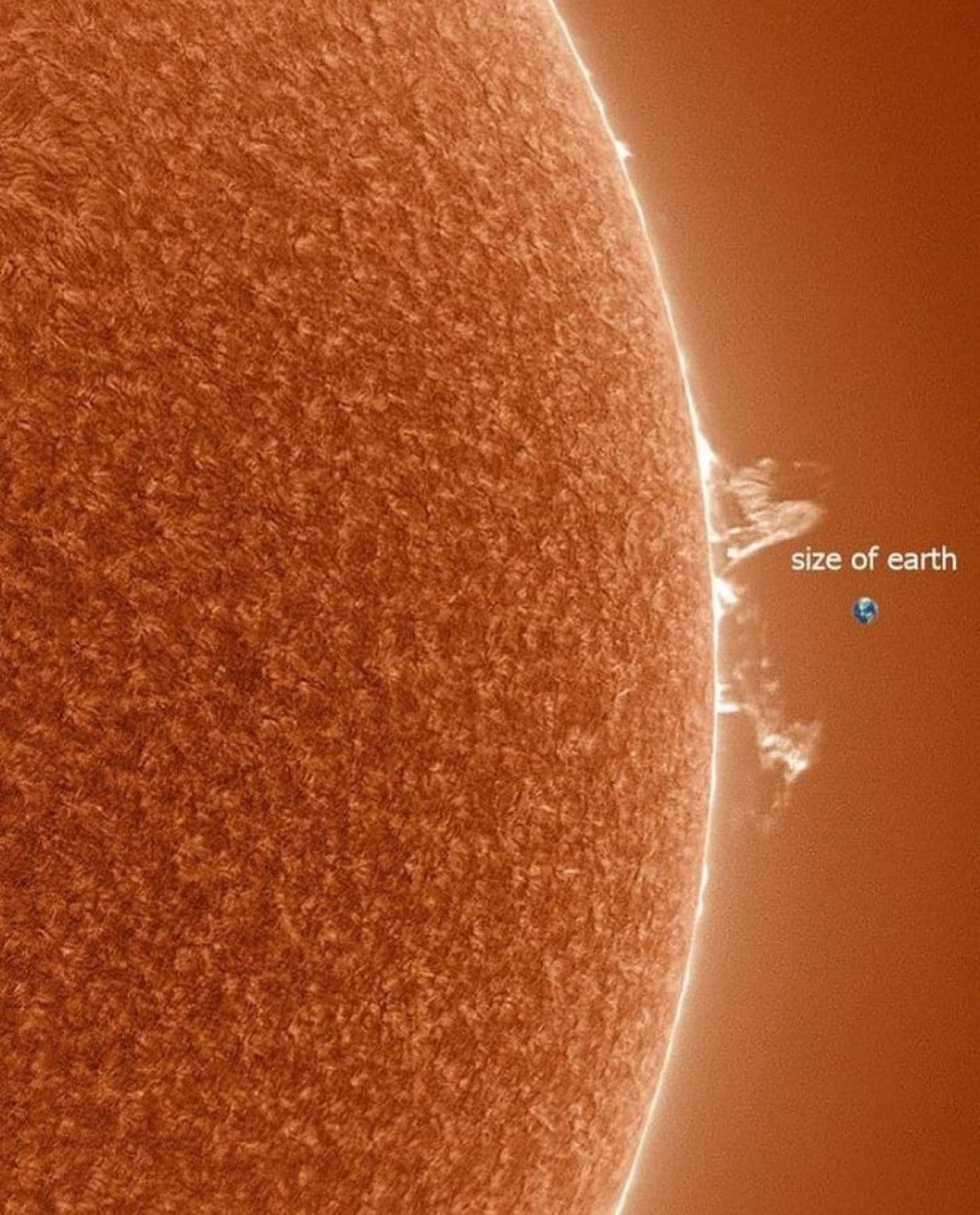 The sun is about 109 times the diameter of Earth. The Sun weighs about 333,000 times as much as Earth. It is so large that about 1,300,000 planet Earths can fit inside of it.