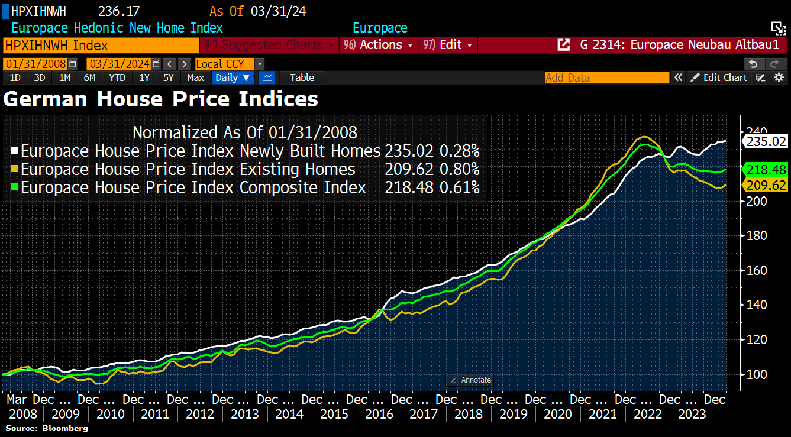 Rising asset prices are crucial for the fiat economy. After two negative years, the real estate market in the eurozone is now also turning positive again. Good news for all those who want to own their own home one day - you have another reason to take on more debt and work more! The bubble economy, triggered by immense debt creation and the monetization of this debt by the central banks, seems to be stabilizing again for the time being.