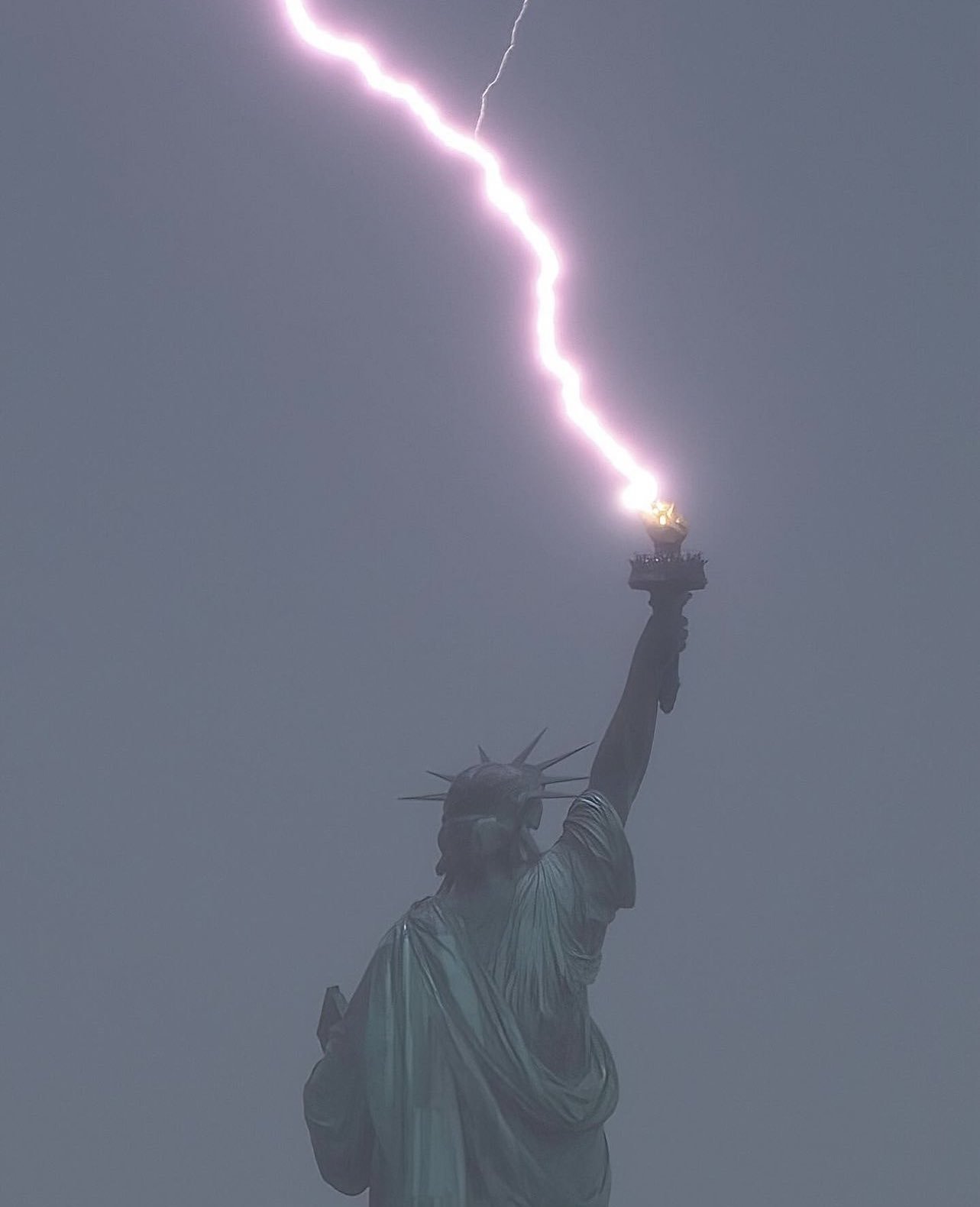 Statue of Liberty being struck by lightning