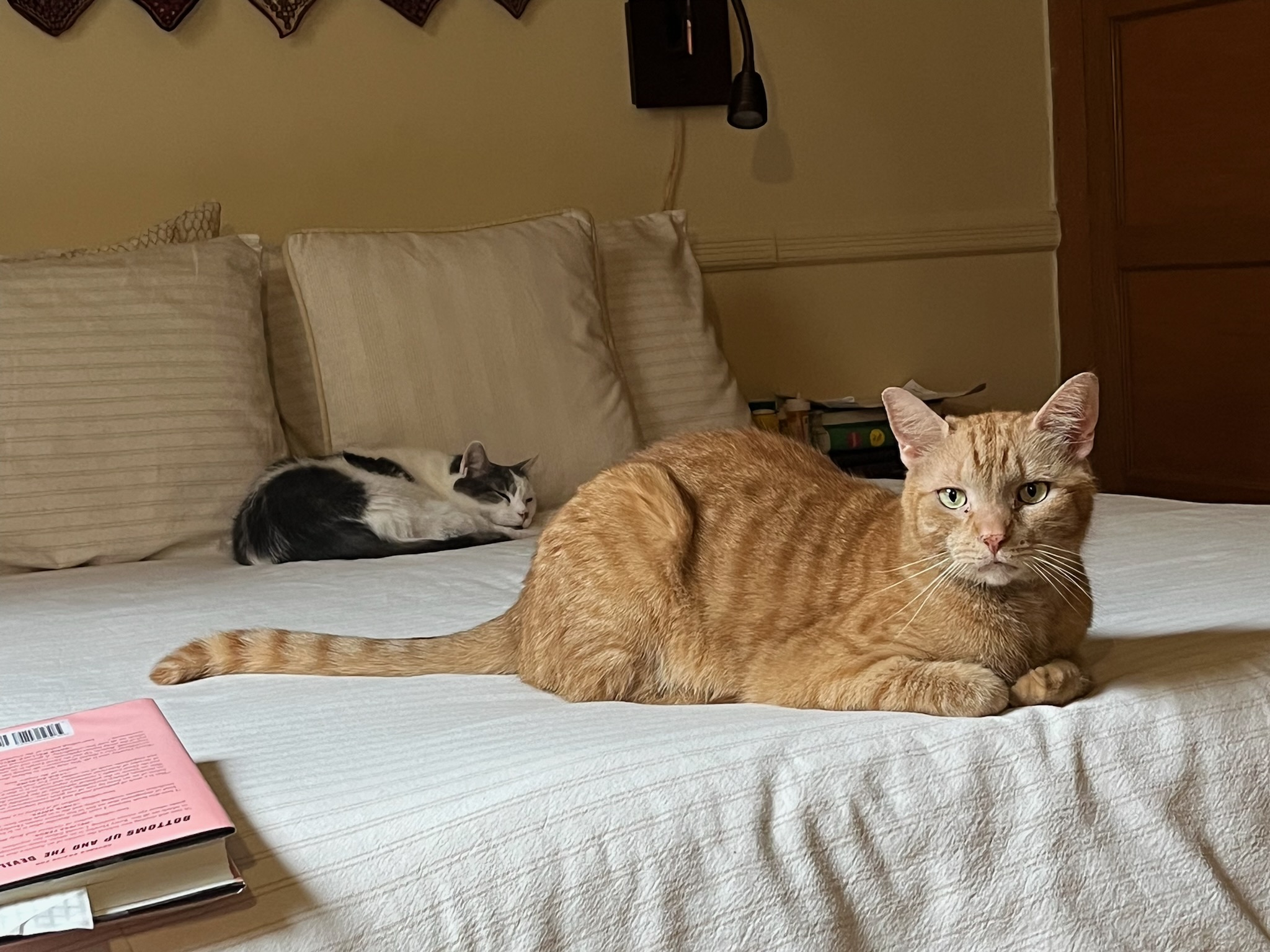The two cats in the photo were owned by my mom. She was a crazy cat lady. She had cats as a child. A cat slept next to me as an infant. We always had cats.