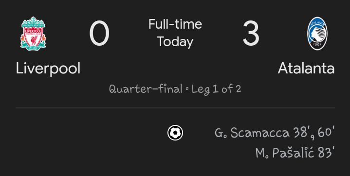 Can Liverpool turn it around and win at the Bergamo next week? I see 30% chance..