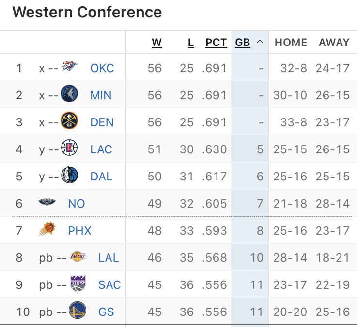 Three teams tied for 1st in the West. Three teams tied for 5th in the East. Aside from a few teams who have their seeding locked in almost every playoff team has something on the line heading into the final game of the season. Every team will play their final regular season game on Sunday. This has to be a dream scenario for the NBA.