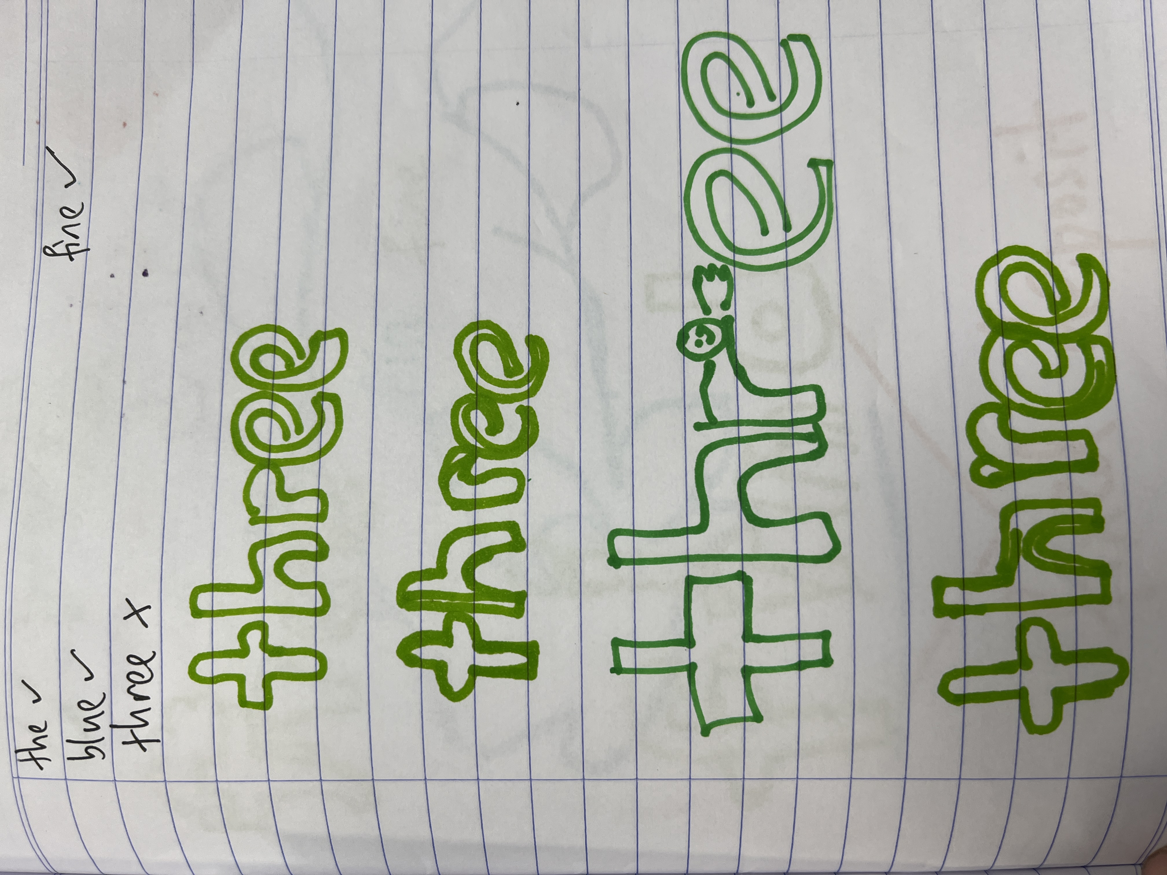 He misspelt find as fine. So, I taught him to identify the small word fin first. I even got him to draw a fin. Then, I explained the magic ‘e’ rule to him.