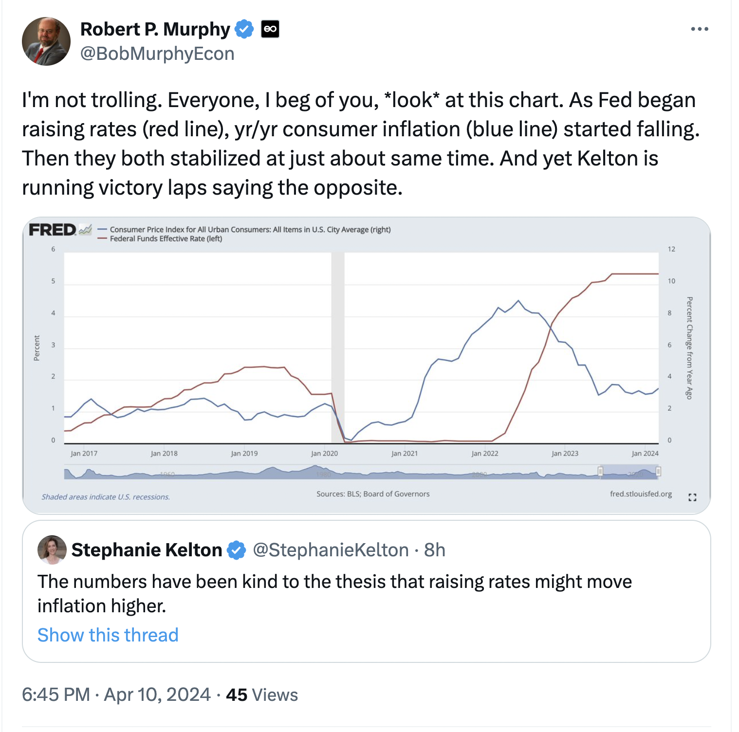 Pretty sure Bob is fully aware of what you say. I believe his point is to point out the MMT Kelton taking both sides of the stats as maintaining her position.
