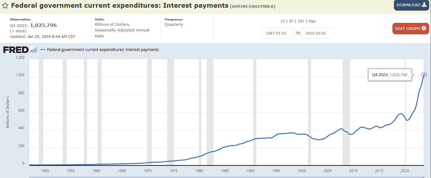 To add: The biggest driver here seems to be federal fiscal policy, since they are the single biggest spender in the economy. High interest rates have seemingly done nothing to curb their spending. In fact, it has seemed to accelerate it. They don't even seem to 'care' that they are borrowing money to pay bond interest at this point. Its not even a talking point anymore.