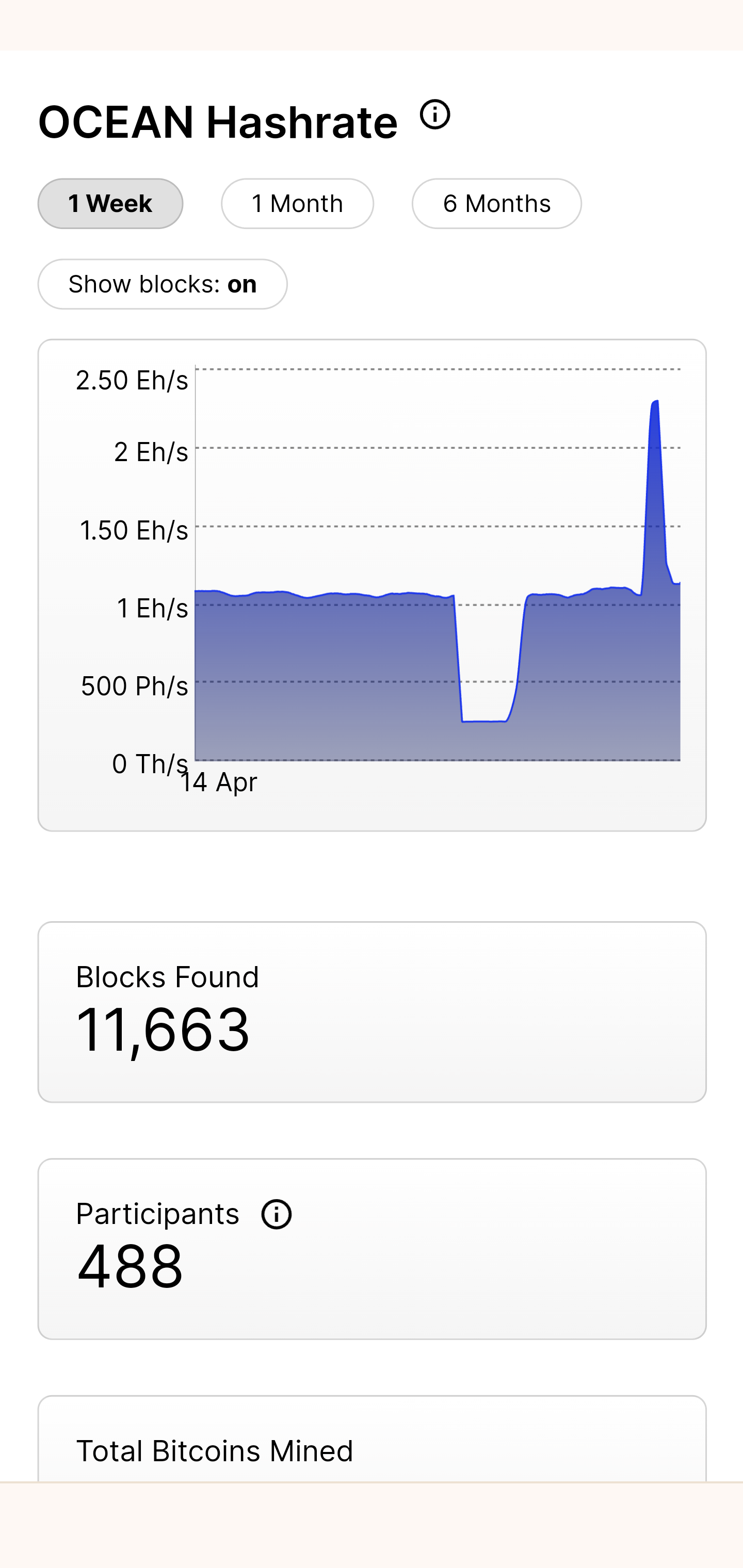 This is just my opinion, but it looks like someone pointed A LOT of hash towards Oceans pool right before the halving. It was about double its usual hash rate. I think this was an attempt to block the new sh$tcoin protocol Runes from getting into their planned launch.
