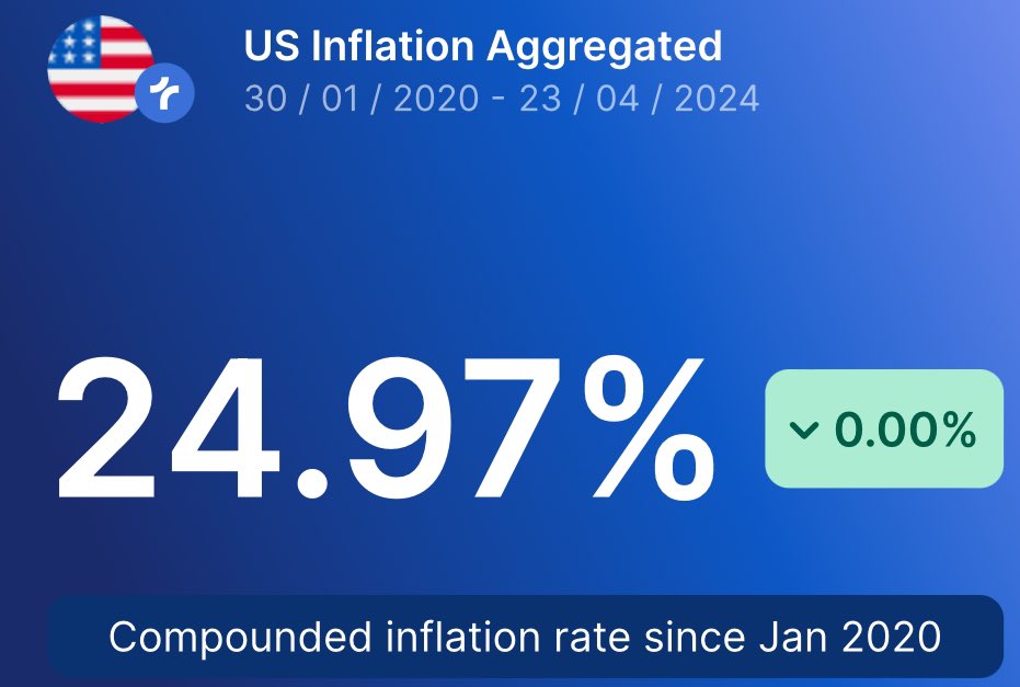 Bitcoin has just had its Halving, the Fed and other major central banks are celebrating their 'Quartering'. The major central banks have destroyed a quarter of our purchasing power since 2020 through the debasement of money. Then you can also thank the politicians you elected, who triggered the destruction of our purchasing power in the first place with a gigantic debt orgy. Congratulations, keep it up!
