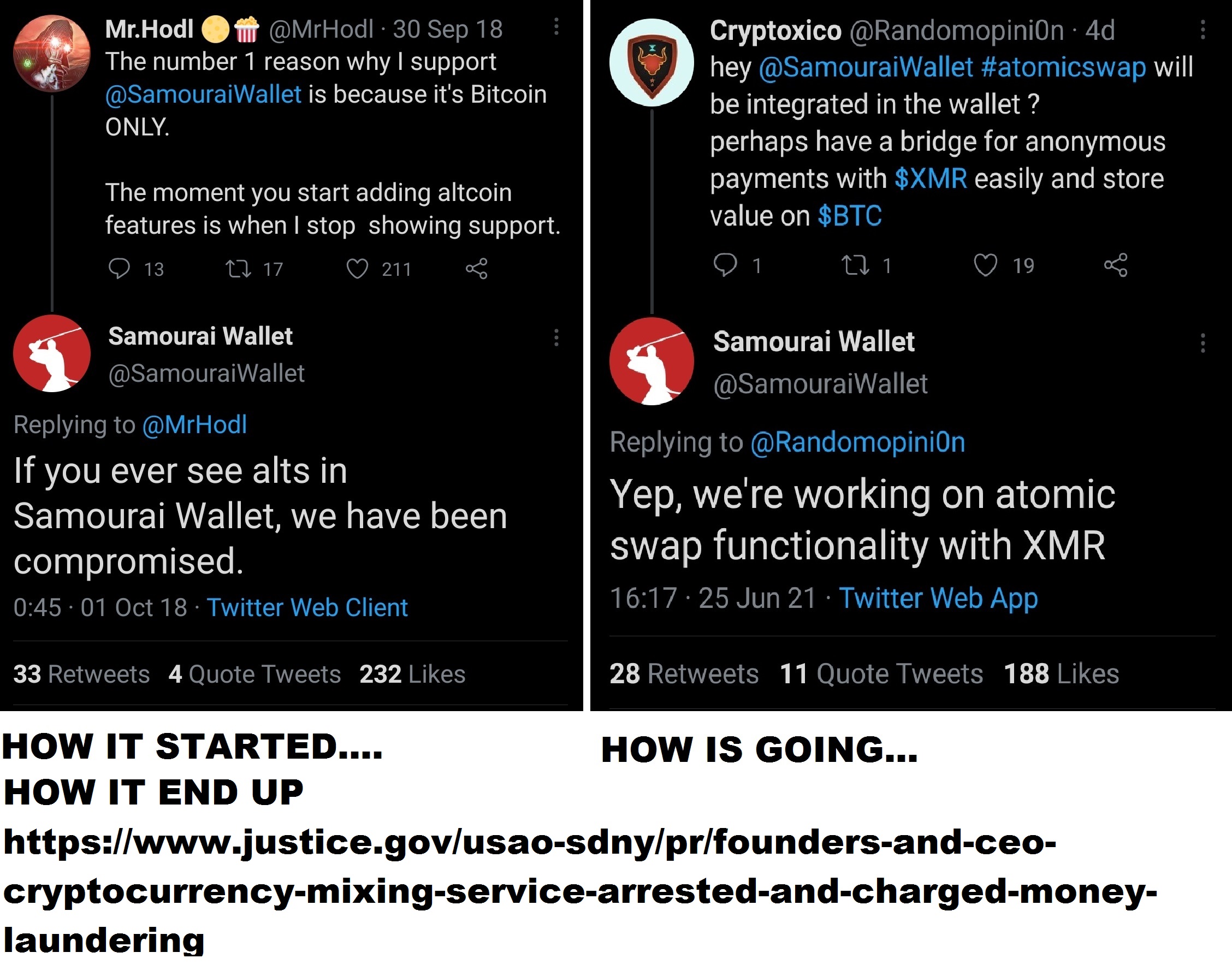 The developers of Samourai Wallet have been ARRESTED, INDICTED by the Department of Justice, and their web servers & domain have been SEIZED.