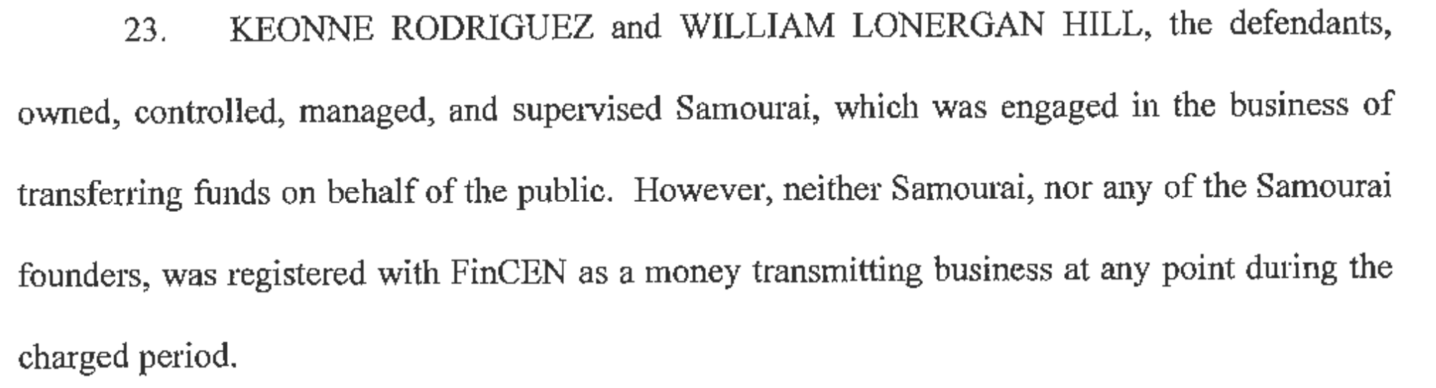 How could Samourai Wallet have been "transferring funds on behalf of the public" if they never took custody of user funds?