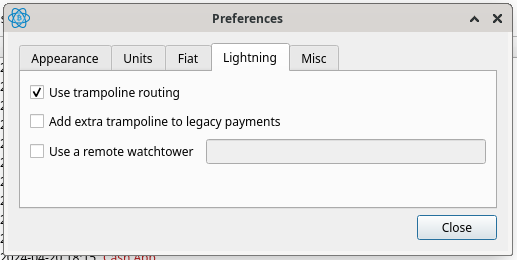 electrum helpI don't know why it gets so little attention. IMO it's far more normie friendly than something like LND, CLN, or Eclair, because it's designed to be used visually with its integrated, excellent gui. The others have UIs but you have to pick one, and they are made by other devs with varying degrees of confusingness mixed in. Electrum strikes the right balance IMO: normies can use a standardized interface that looks nice and matches what they'd expect from a desktop or mobile app, and power users can access advanced features from the menus, or, if that's not enough, there are the command line and RPC options.