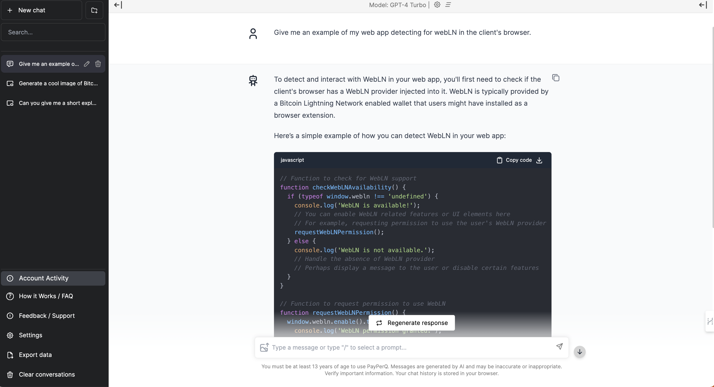To start, PayPerQ (ppq.ai) is a "premium" AI Chatbot interface which operates on a pay-per-usage model via lightning payments: