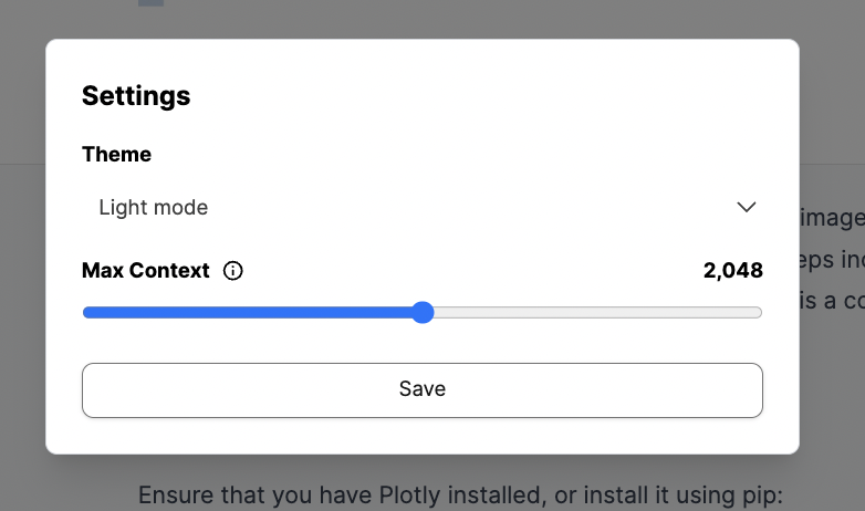 And you even have light and dark mode as well as the abiity to set your context window in the settings: