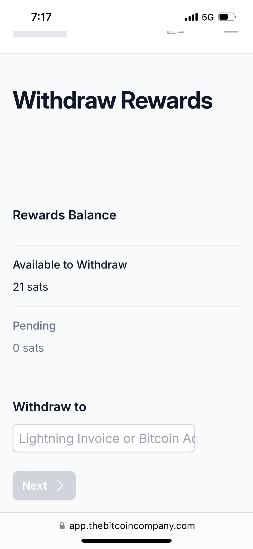 It’s hard to change habits, given how used I am to using Bitrefill, but I signed up with The Bitcoin Company upon @1GLENCoop’s invitation. Seems like I got 21 sats for signing up. Not a game changer, but always good to do something new and promising before the start of a work day.