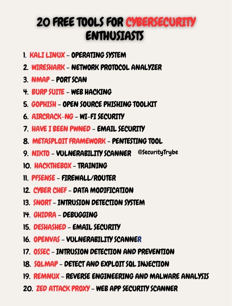 20 FREE Tools For Cybersecurity Enthusiasts