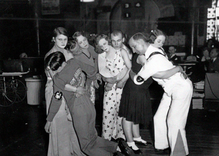 Last four couples in a dance marathon, Chicago, 1930