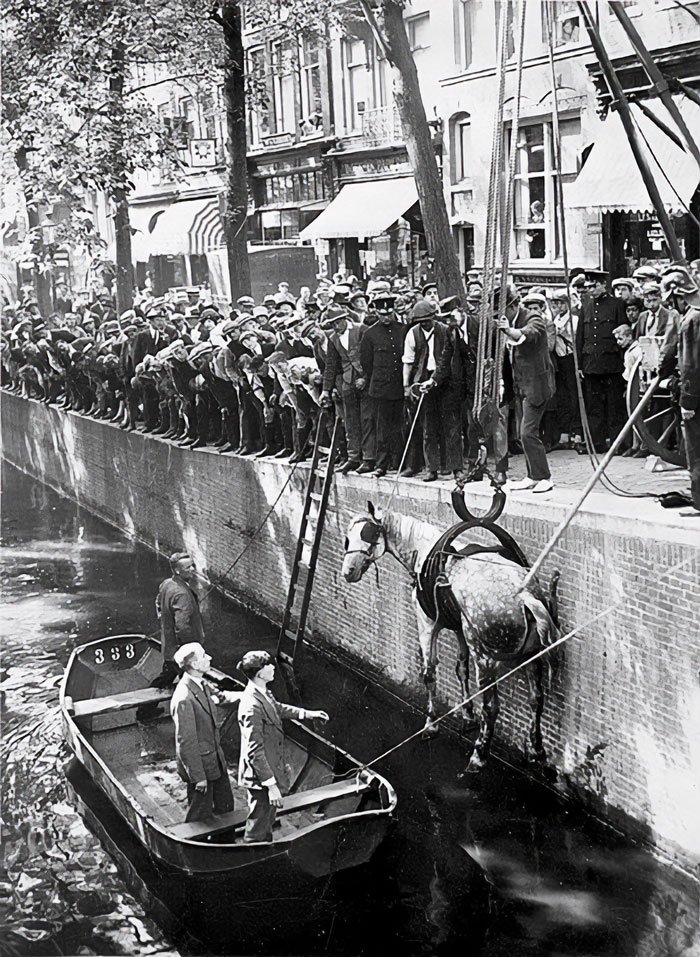 Rescuing a horse that fell into the canal. Amsterdam, 1929.