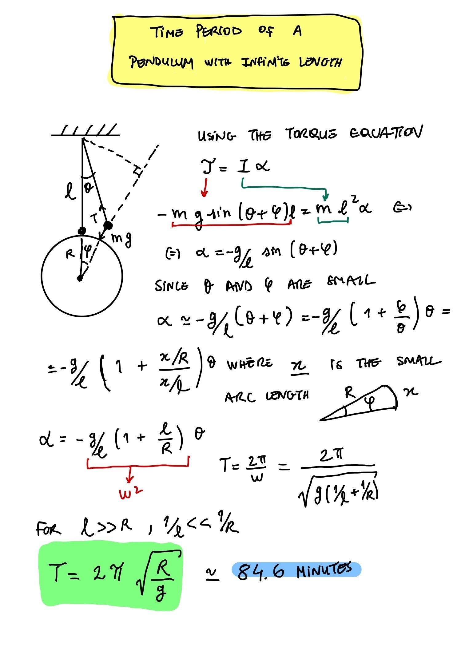 The time period of a pendulum with infinite length is 84.6 minutes.