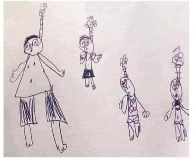 His teacher pulled the drawing below out and said, "I asked him to draw his familv and he drew this. Would vou mind explaining?"