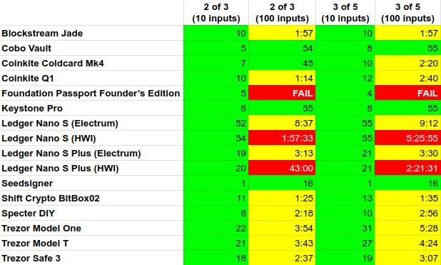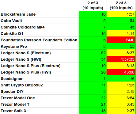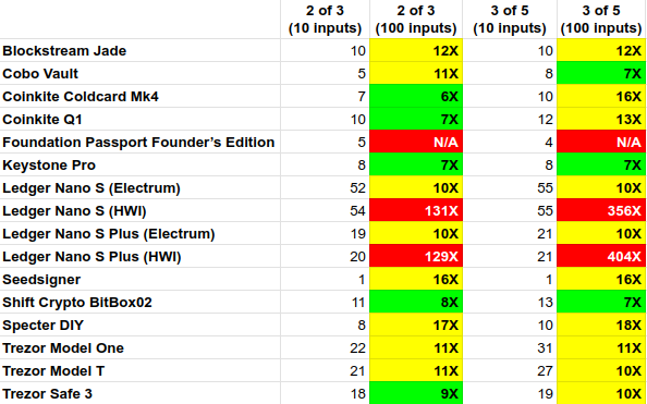 How well do various hardware devices perform when it comes to complex multisignature bitcoin transactions? I spent many hours signing dozens of transactions to produce this report on the current state of the hardware ecosystem.