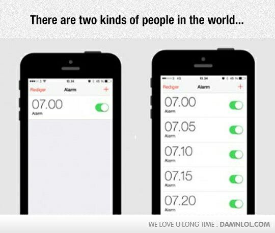 But I only have two alarms set! And I almost always get up with the first one, the second is just a backup in case I don't hear the first. Which group am I in?