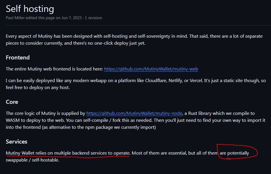 To reiterate for people, darth coin has no idea what he's talking about here. He always insists that mutiny is not self custodial but is categorically wrong. For mutiny everything runs on your device, all our servers do is provide encrypted cloud storage and serve the actual website.