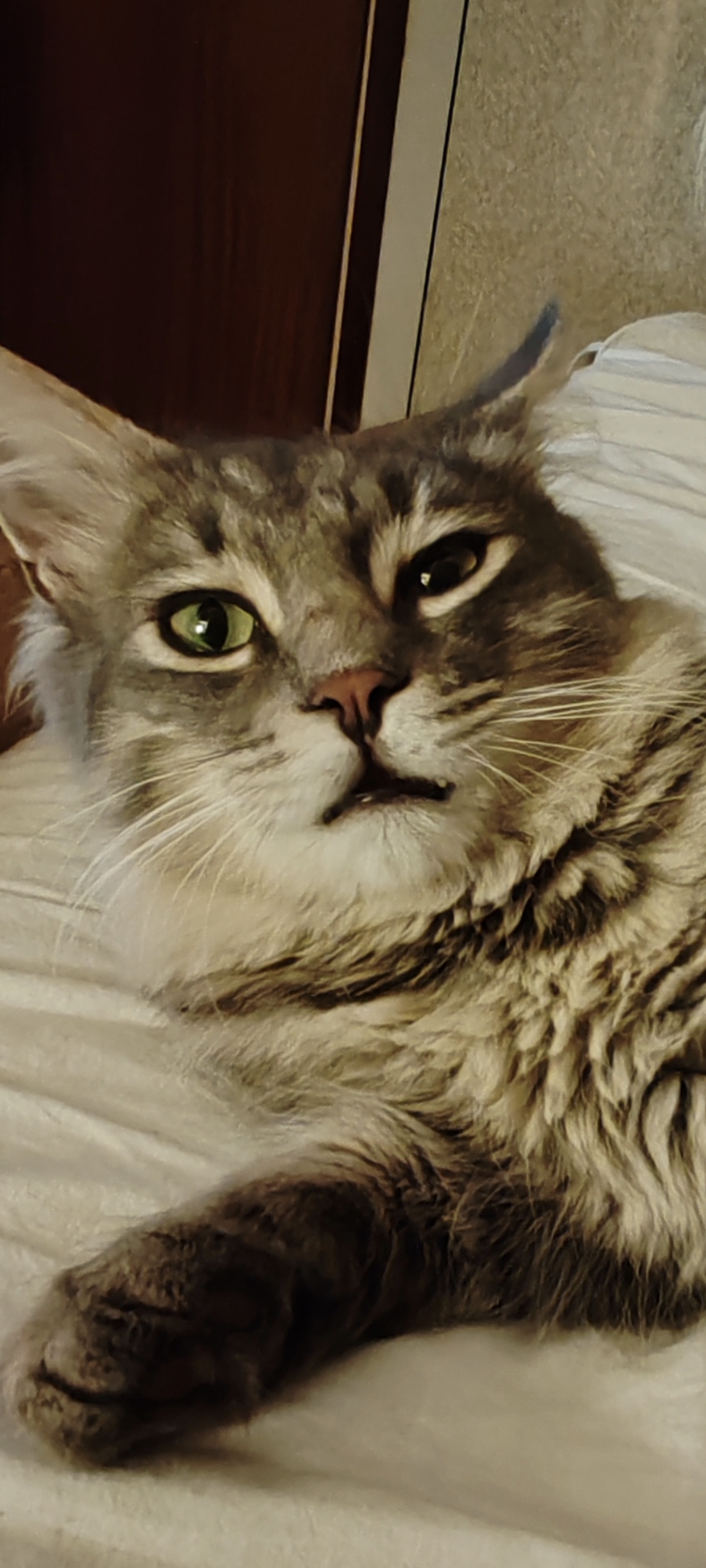 I love my cat. he has a very cocky, arrogant attitude if he wants to. we love a "love hate" relationship haha. we fight, cause he can be bratty, but he can be so darn sweet and loving too!!! I love my Donnie and would trade him for anything! you know unlike other cats, he listens really well when it comes to getting up on things like the counters or getting in trash! he's really good in regards to that!