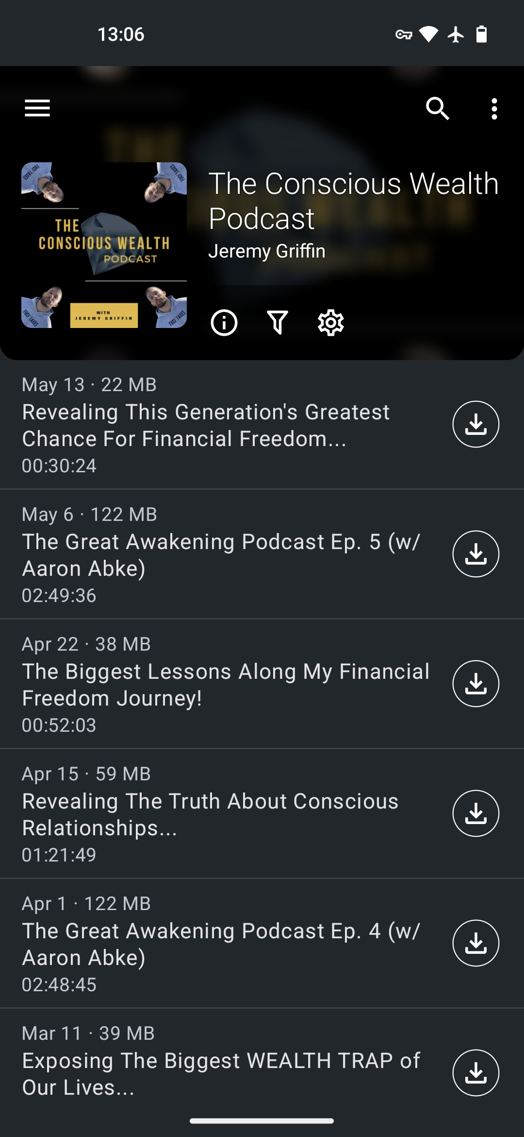Also, you can follow conscious wealth podcast. He got a wealth of information as well. Jeremy Griffin.