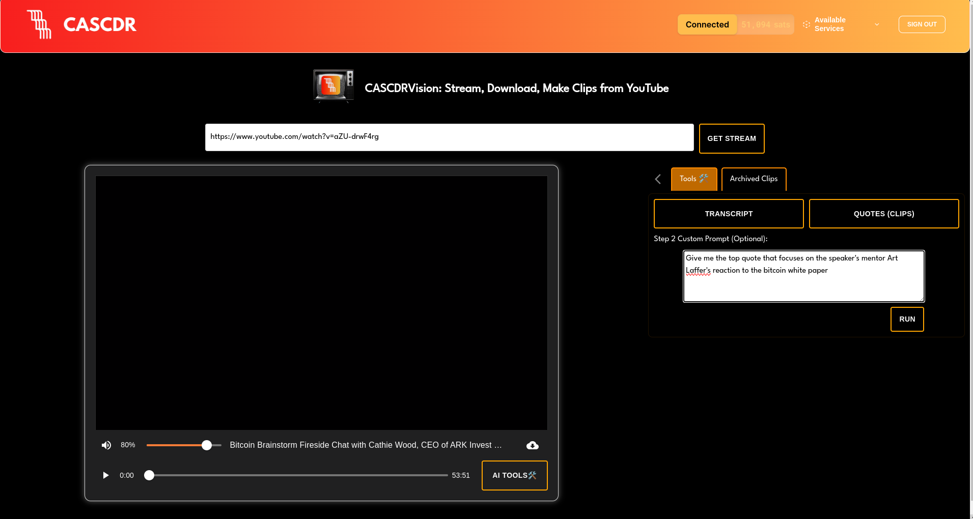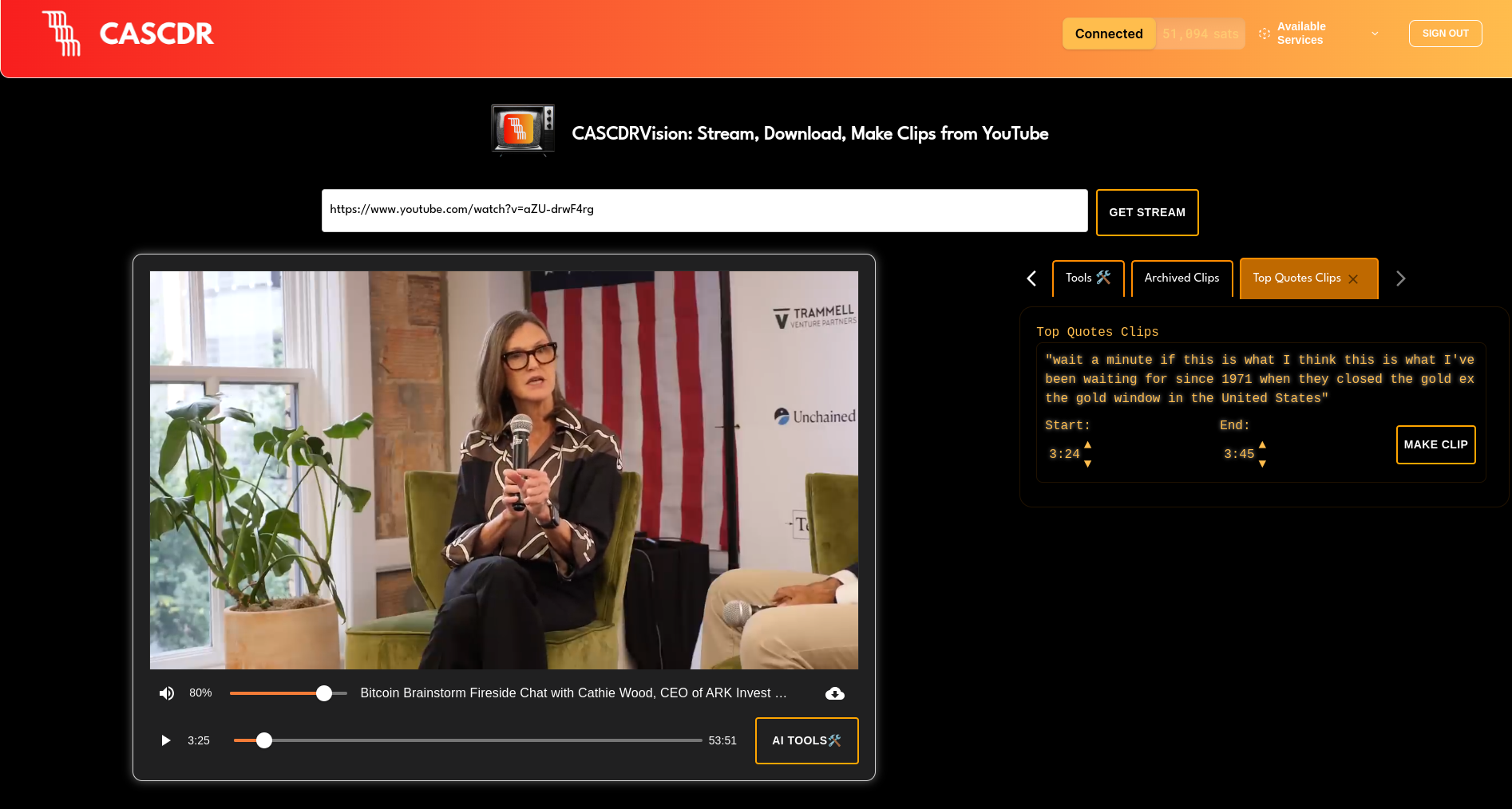 Post TLDR: we made an "augmented layer" on top of YouTube called CASCDRVision that makes it quick and easy to make clips of content. We also launched our CASCDR Amber allowing you access to CASCDR tools in exchange for fiat instead of just bitcoin (you're welcome HODLers).
