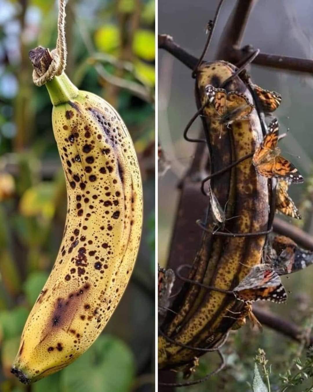 Ripe bananas emit a strong, sweet aroma that attracts beneficial insects like butterflies, bees, and butterflies.