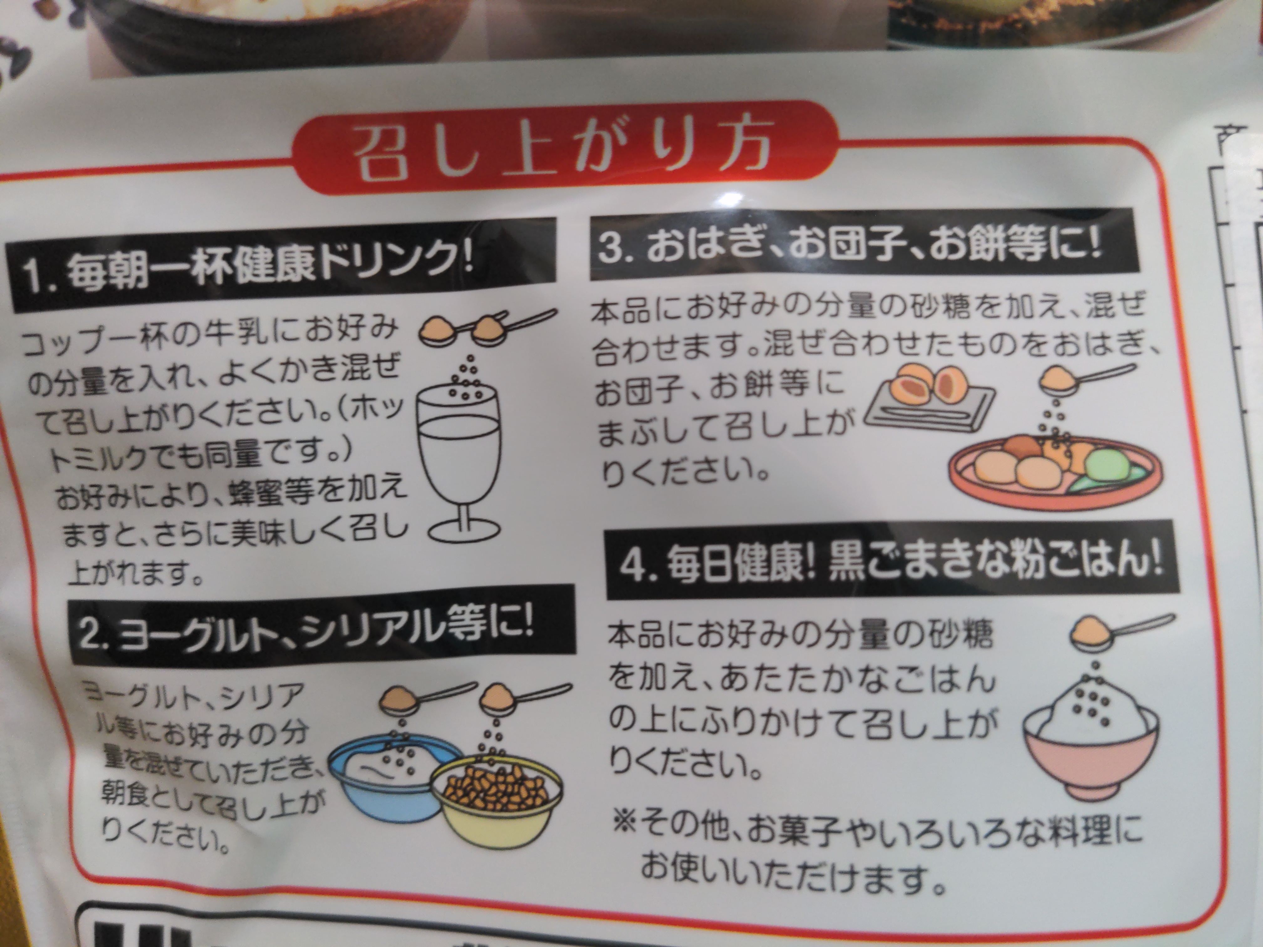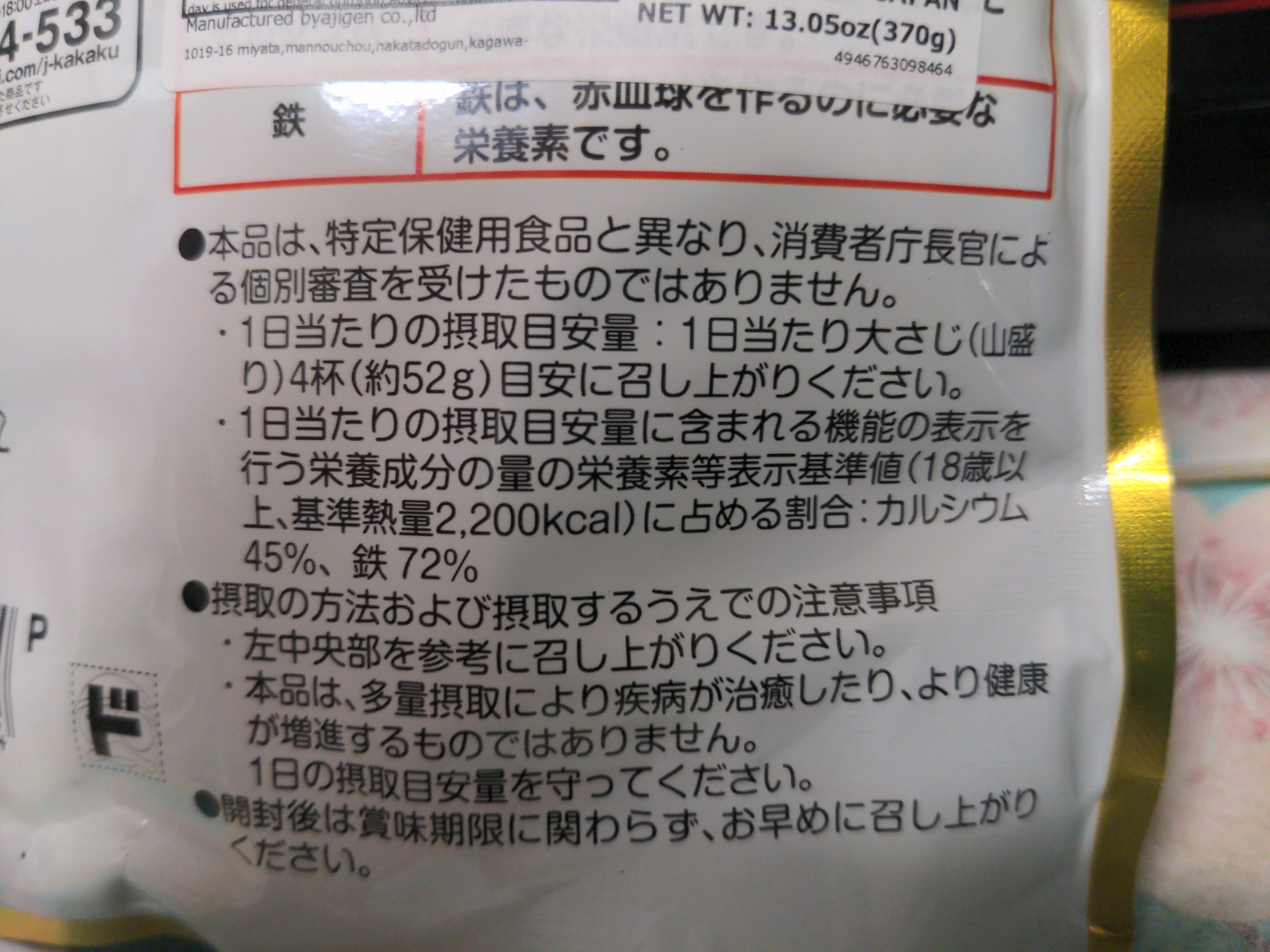 Recommended to take four spoonfuls per day (52g). They comprise 45% and 72% of the recommended amounts of calcium and iron respectively for people aged 18 n above